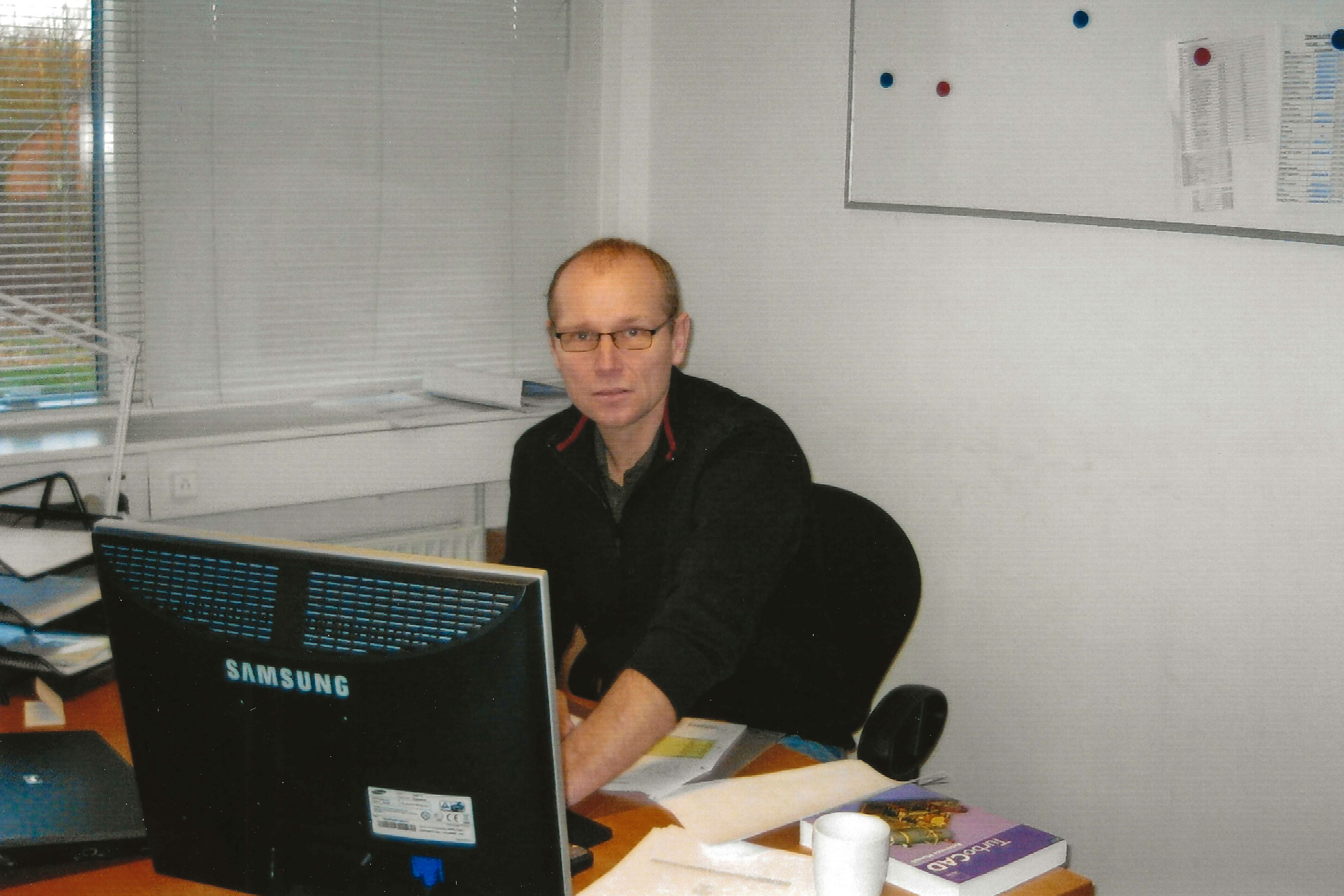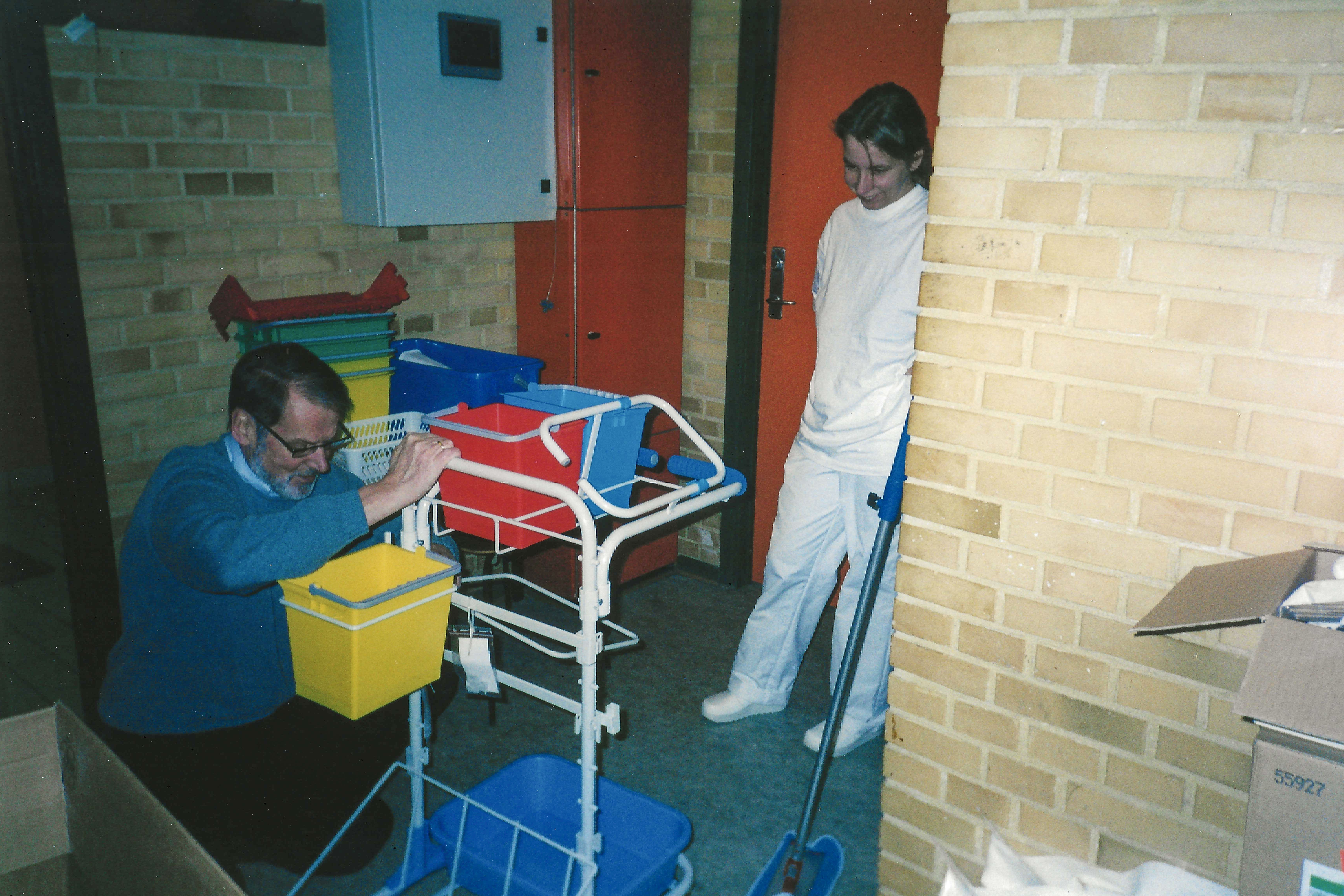 - Vi startede TekniClean i Johns garage i det gule hus i Grejs. Pladsen var trang og reolerne fyldte med kemikalier, rengøringsmidler og klude. Der var ingen fancy kontormøbler eller indbydende mødelokaler. Alt var minimalistisk og beskedent. Men vi elskede det, husker Carsten Pedersen, der i dag er adm. direktør i TekniClean.