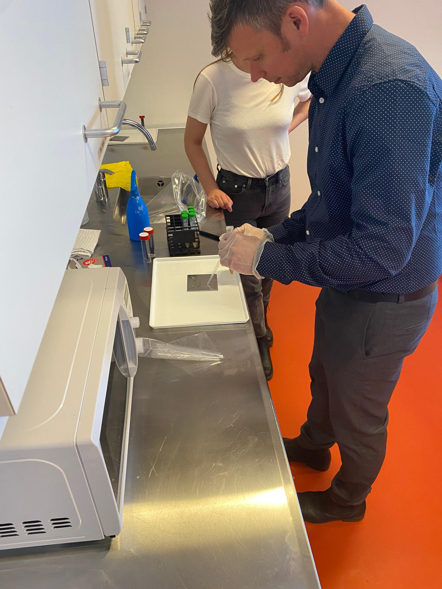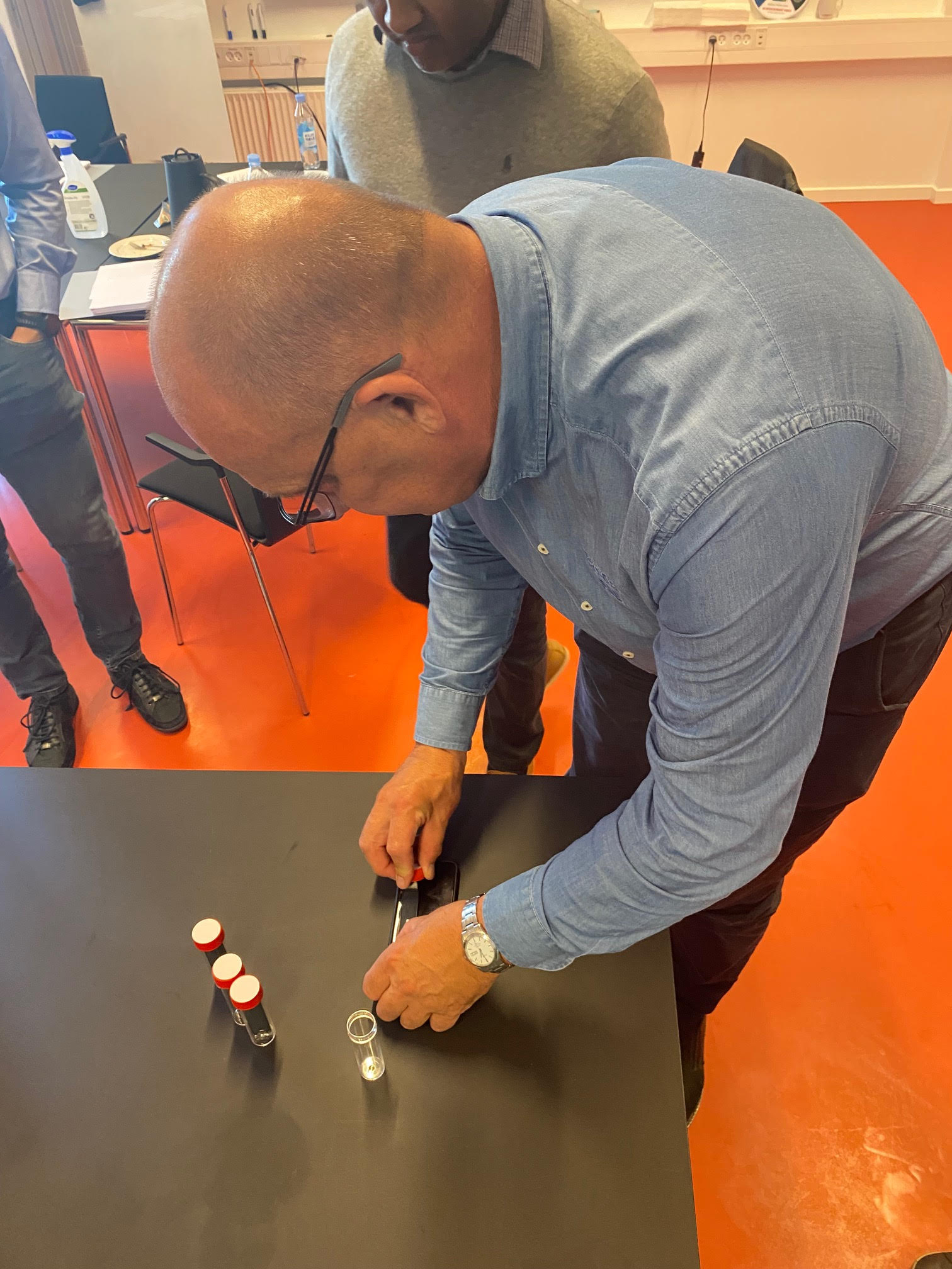 - De små praktiske opgaver, som var lagt ind i kurset, er spændende. Blandt andet besøgte vi DMRI's udviklingsafdeling og arbejdede med UV-lys og forskellige rengøringsmetoder i den forbindelse. Blandt andet hvordan UV-lys kan bruges til hurtigt at registrere eventuelle bakterier. Det var meget spændende, fortæller Thomas Vinther, der er driftschef hos TekniClean.