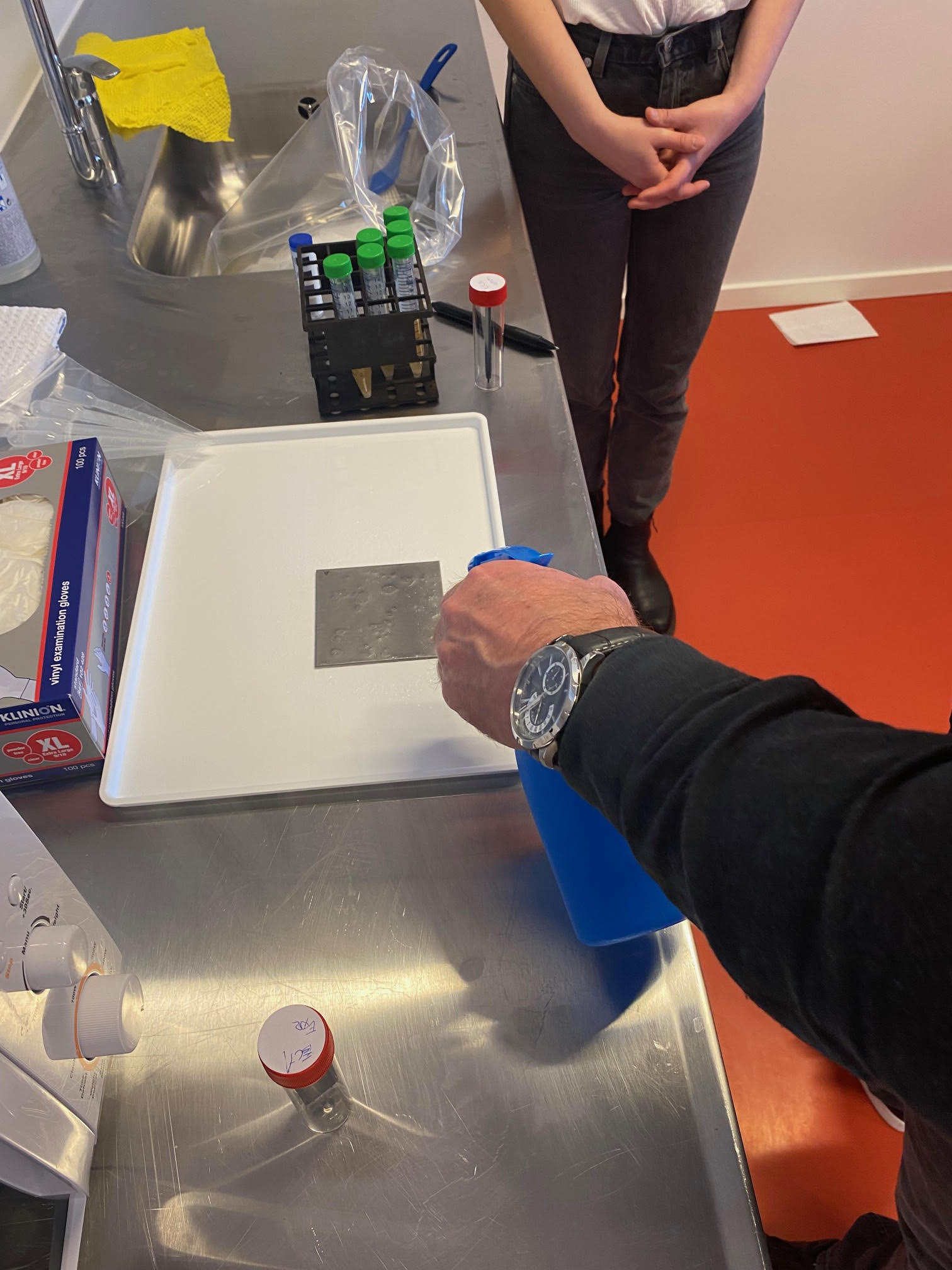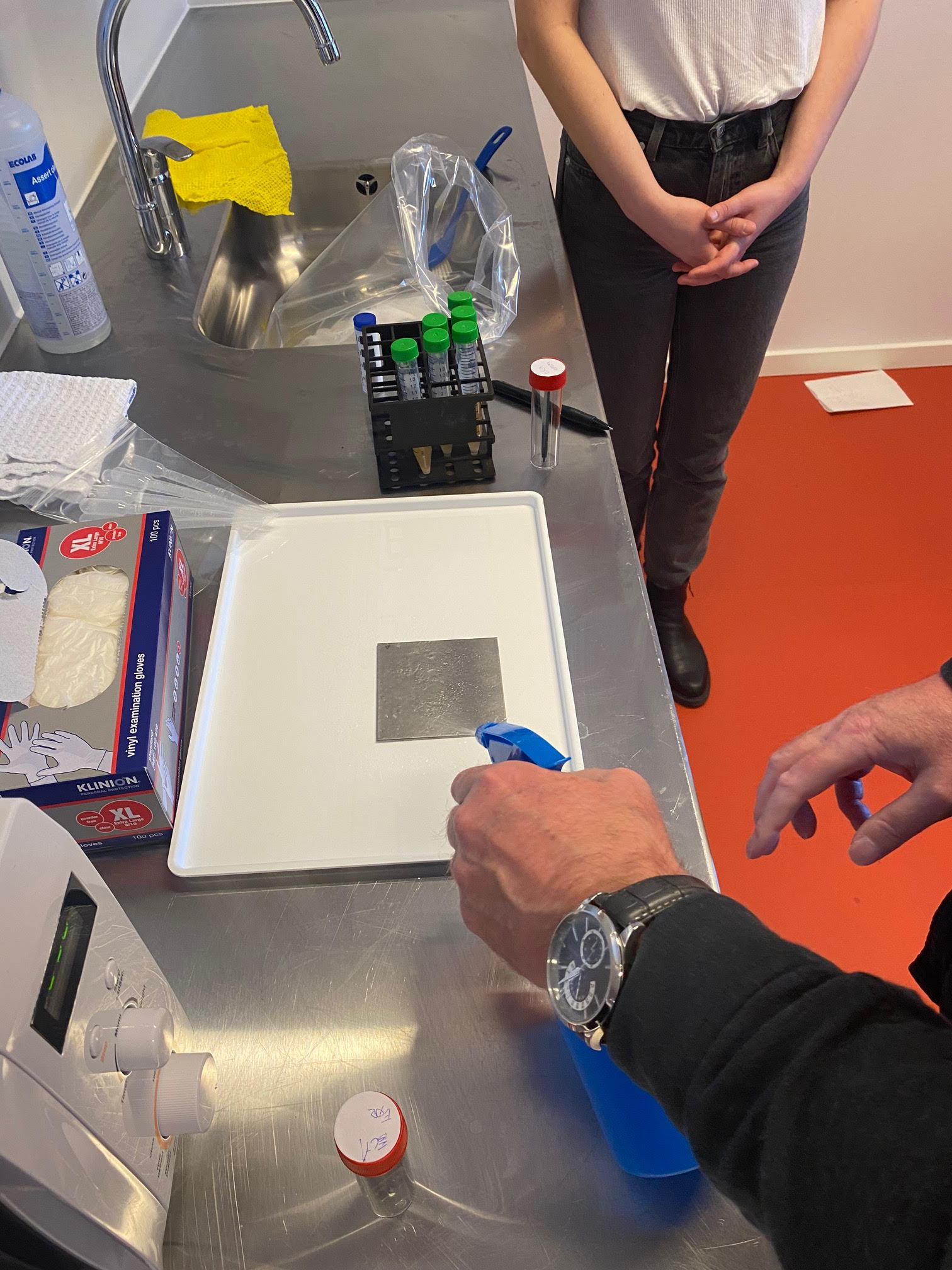 Omkring 15 af TekniCleans dygtige medarbejdere deltog i kursets anden del, som foregik hos Danish Meat Research Institute på Teknologisk Institut i Taastrup. Her var det praktiske i højsædet, og deltagerne fik nye redskaber til at teste, om rengøringen er i orden.
